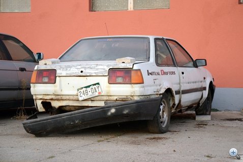 Nem voltunk túlzottan optimisták, hiszen egy legalább hat éve helyben porladó autóról (a legendás ős-drifter, Chicken néhai verdája) beszélünk, ráadásul a nyolcvanas évekbeli japán autók azért iszonyatosan képesek rohadni, de egy maximálisan low-cost projekthez remek alany lesz: ha a motorja jó, akkor fillérekből megoldunk mindent, bízunk magunkban.