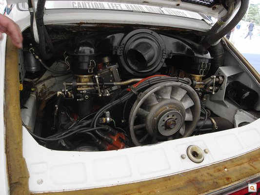 Vissza a Porschékhez. Sorban álltak a különféle 911-esek, a legrégebbitől a legújabbakig, volt itt versenyautó, rövid tengelytávos ősmodell, RS, utolsó léghűtéses, pályagép… és az én 953-asom. Elnézést, de azokban a pillanatokban csak így tudtam tekinteni az autóra, holott – ha a nyomozásaim helyes eredményre vezettek, az jelenleg Jacky Ickx tulajdonában van.