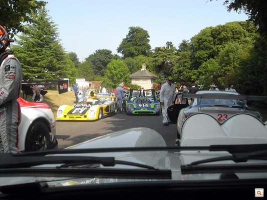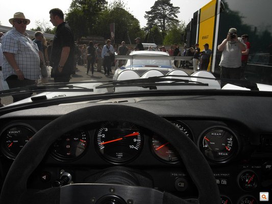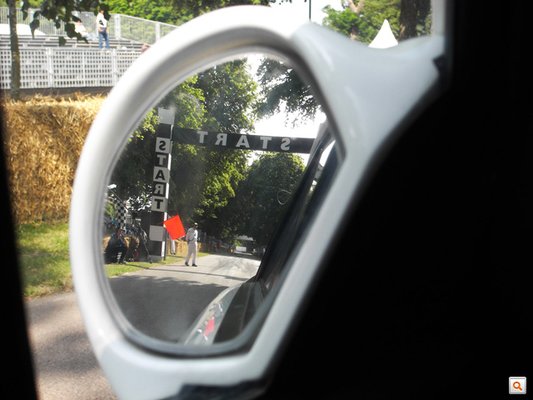 A goodwoodi pálya egy kanyarokkal tűzdelt, egyirányú autóút fel a dombnak, összesen 1,88 kilométer hosszú. Azon azért lehet autózni. A pályán először legurulnak az autók a startvonal mögé, az ott kezdődő rész alsó végén van egy kis tér, ahol meg lehet fordulni, hogy mégiscsak orral felfelé álljanak a startnál. Lefelé is óriási a dugó, felfelé is. Mellettem, már a pályára ráfordulva, BDA-motoros 1-es piskóta-Escort versenyautót túráztatnak, mögötte sorban állnak a legendás Le Mans-i versenyautók. Fojtogató a füst, a zaj, nagy divat a gázrugdalás, reped a dobhártya, vágni lehet a hangulatot, én a bal oldali mutatócsoportra pillantok, és hirtelen regisztrálom – nincs benzinem.