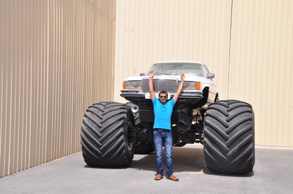 A másik véletlenül sikerült látogatás az autómúzeum volt. Az ötlet még Dávidtól, a Totalcar címlap Paganínijétől jött, aki eléggé képben van az Emirátusokkal, és kár is lett volna kihagyni, annyi zseniális kreténség parkolt a piramisban. A problémák ott kezdődtek, hogy a múzeum weboldalán semmilyen elérhetőség sem szerepelt, végül egy sokadik google-találatból kinyert telefonszámot tárcsáztam, és a világ legunottabb hangjával folytattam le a következő telefonbeszélgetést: