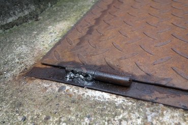 Na, végre. Elfordul, gyönyörűen. Letettem a fedelet, s bár elég nagy lett a zsanérdarab és az akna fémkerete közötti hézag a nyolcévnyi rohadás és koptatás miatt, de végül is összevarrtam. Nem szépen, de a célnak tökéletesen megfelel, megkentem, most nyílik-csukódik, mint a vaj, nincs benne feszültség. Így már talán világos, miért ebédeltem fél hatkor.