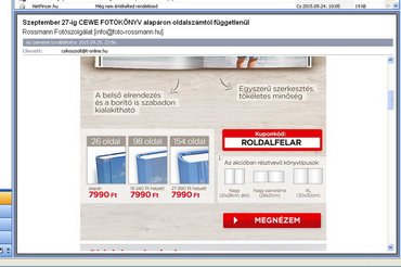 Nem tudom, ki találta ki a Rossmann-nál, hogy kétnapos határidővel akciózzon meg egy ilyen terméket, aminek az elkészítése normális esetben egy hét lenne minimum, ráadásul mindezt pont hétvégére időzítse, de nem volt teljesen magánál, az biztos. Bár biztosan akad ebben az országban pár extra mód előrelátó egyén, aki bevetésre kész fényképalbumokat tart a gépén ilyen eshetőségekre készen. Csak gondolom - igen kevés.