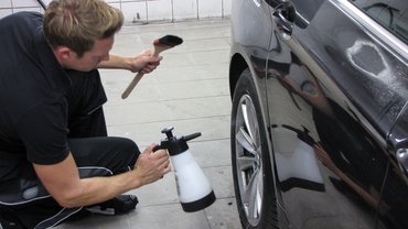 De soha nem polírozással kezdődik a kocsi ápolása, először rendesen le kell mosni. Sokan azt hiszik, mindent tudnak a kocsimosásról, mert hát vödör kell, meg rongy, mosogatószer a vízbe, oszt hadd szóljon. Nekik elég, ha csak annyit mondok, hogy a profik minimum két vödörrel dolgoznak, az egyikben a mosószeres víz van, a másikban csak kimossák a szivacsot. Mosogatószert sosem használnak, csak sampont, mert ami jó az edényeknek, az kimondottan nem jó a fényezésnek: leoldja a korábban felvitt védő viaszréteget. És speciális vegyszerekkel előkezelik a kényesebb részeket, mint a ritkán mosott motortér, vagy az extrém dzsuvás és minden alkalommal takarított kerekek, felnik.