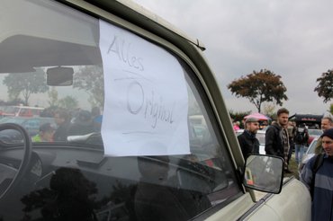 Olcsó autót ne itt keressen az ember, a Veterama minden veterános-héját idecsábít. Mindenki valami zaftos összegről álmodik, de úgy tudom, ez nem egy Techno Classica, ahol ész nélkül vásárolnak az emberek. De ettől még persze be lehet próbálkozni, ha jön valami madár, bejöhet az ember számítása. De természetesen nem csak a minden vacakért dupla pénzt kérő szerencselovagok vannak itt, sok olyan autót látni, amire már szombaton kiakasztják az elkelt-táblát.