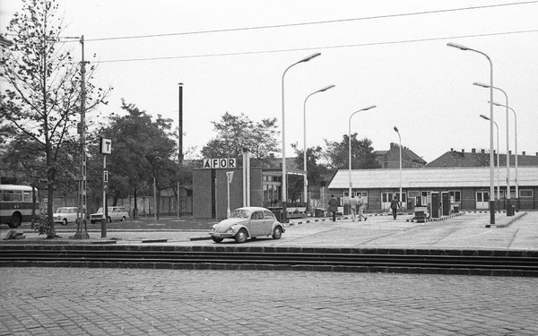 Ha csak a képet látom, soha a büdös életben nem mondtam volna meg, melyik utcát, vagy kerületet látjuk, de még a várossal is bajban lettem volna. Pedig nap mint nap járok erre, ez a Váci út-Petneházy utca sarka. Akkor még villamos járt itt, meg Áfor-kút volt a városból kivezető oldalon. Érdekes, hogy akkoriban mennyire nem volt szokás a benzinkutak fölé tetőt szerkeszteni. Végül is, úgy sem a kuncsaft tankolt, a kutas meg hadd ázzon. Azon a ponton, ahol a kép készült, ma már kezdődik a felüljáró, villamos sínek sehol. Így néz ki a hely a google mapsen .
