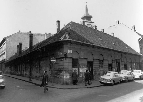 Ezt az utcasarkot sokan ismerhetik, számtalan bulizó sétált el előtte. A Ráday utcai kiülős-negyed kellős közepén vagyunk, ahol akkor még parkolhattak autók. Érdekes módon csak német gyártmányok vannak a képen, a népi demokratikus, meg a tényleg demokratikus Németországokból származó kocsik. A Trabik és a púpos Waresz mellett egy Bogár-utódnak szánt Typ3 látszik (hiába az igyekezet, a Bogár sok-sok évvel túlélte).