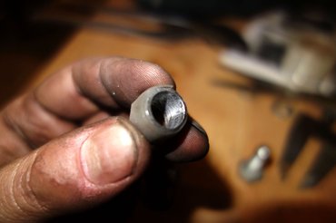 Hoppá! Ezzel meg is született az ötlet. Elő egy csőkulcs, kivágtam a középső szakaszából (ahol kerek) egy 15 milliméteres darabkát, azt köszörűn, majd hogy szép is legyen, reszelővel visszahoztam 10,1-es vastagságúra. Fogtam a 10-es fúrót, megtúrtam a belsejét is, mert abba szűzen épp nem ment bele a csavar. Meglett tehát az a fele, ami illeszkedik a csavarra, egyben a megfelelő vastagsággal nagyjából ki is támasztott. Már csak azt kellett megoldanom, hogy a pálcába szorosan illeszkedjen.