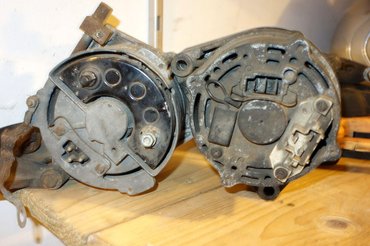 Gondolkoztam azon, hogy összecserélem a generátorok első palástjait, de a Bosch módosított a szerkezet fizikai felépítésén is: a régit három csavar fogja egybe, az újat négy. Ezzel kilőttem a régi házba az újabb technika beépítésének lehetőségét is, mert a hátsó palásban van az összes csatlakozó és szénkefe. Oké, akkor nem maradt más: szabjunk, abban a rendes, 1975-ös, Ó utcai szaki-stílusban.