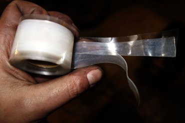 Látják, erre van a spéci szilikongumi-szalagom, amit jó hat éve vettem az Oldtimer Expón két repülős figurától. Ezernyi dologra használtam már, erősen fogytán van, pedig sokszor a leglehetetlenebb dolgokat sikerül vele megoldani. A cucc trükkje: iszonyatosan bírja a nyújtást, nem oldják a vegyszerek, s önmagához annyira hozzátapad, hogy kvázi összeolvad. Ebből vágtam egy megfelelően keskeny csíkot, s addig tekertem körbe a csőkulcsdarabot, amíg meg nem kaptam a szorosan illeszkedő méretet – kvázi gyártottam egy szilentblokkot. Rettentő precíz lett, én meg rettentő büszke. Persze csak úgy a saját koordinátarendszeremben, az autószerelők nyilván röhögnek a próbálkozásaimon. De a célnak egy közepes időre megfelel, majd szerzek ilyen csavart. És kicsiny alkatrészgyár kezdett kibontakozni zuglói garázsomban, azt azért érzik.