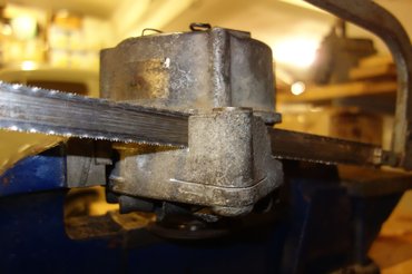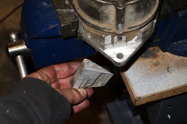 Az alsó rögzítési pont ezzel nagyjából megoldást is nyert, jöhetett a fölső fül. Először úgy terveztem, hogy csak ablakot vágok a 123-as fajta generátor vaskos fülére, hogy használható legyen mindkétféle konzollal, de rájöttem, hogy ehhez végtelen sokat kellett volna köszörülgetnem. Vagy megpróbálhattam volna fűrésszel, de ahhoz nem éreztem elégnek kézügyességemet. Meg aztán – 123-as generátor úgyis van, mint szemét, nem kár érte.