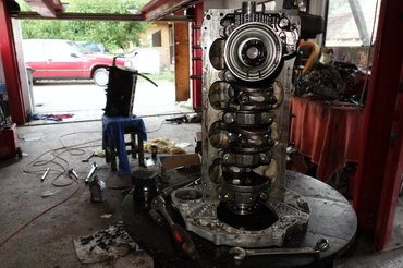 A biztonság kedvéért egy Karesznál levő, felújított állólámpás blokkról készített képen megnéztem azóta, hova érhetett bele a csavar. Szerencsére nem a hajtórúdcsapba, amitől féltem, mert az ütés úgy akár meg is sérthette volna a csapágyat, csak a főtengely buta, nagy, masszív sonkájába nyúlt bele.