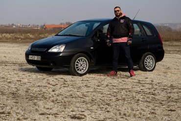 A Suzuki Liana igazi célszerszám az elnyűhetetlen fajtából, hasonló lelkületű autókat várunk tehát a képen is. A bomber dzseki ennél a képnél elengedhetetlen, az alul-felül kilógó rózsaszín kapucnis pulcsi plusz pont. A napszemüveg pontos típusát biztosan meg lehet találni a Napszemüveg blogban, de a hanyag félmosoly lemásolásához rendesen meg kell dolgoztatni az arcizmokat. Egy színes cipőfűző és az alufelni is sokat tudnak dobni az összképen.