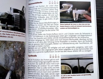 Szemre ez egy szerényebb, puha fedeles, kisebb kiadvány, mint a bennfentes körökben állólámpás-Bibliának nevezett Koch-Rhode féle szuperkönyv. De nicsak, kik jegyzik? A kiadó a Heel Verlag, ami eleve jó ajánlólevél, a szerző pedig az a Thomas Hanna, akit Németország-szerte a Ponton-pápának neveznek, övé a Mercedes Ponton Manufaktur nevű cég, ahol egyébként a régi, gödöllői, tönkrement szuperrestaurátor-műhely legénységének a java része dolgozik ma. Hannával hosszan beszélgettem is az idei esseni veteránbörzén, az ember tudása nagyjából végtelen a témában, porból tud Pontont építeni, a Holdról, szabad szemmel tud Ponton-állapotot felmérni, szóval ezt a témát eszi, issza, álmodja és lélegzi pár évtizede. Övé az a kék-sárga rali-Ponton is, amit elég sokfelé látni versenyezni, s a neten van róla több film is - az a kocsi már önmagában egy újkori legenda.