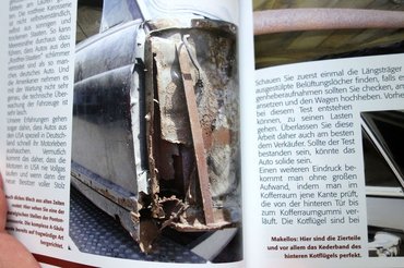 Ha meglett volna ez a könyv, nem hunyok szemet a C oszlop tövében található kezdődő rozsdafoltra, hanem befekszem a csomagtartóba, és megnézem zseblámpával odabentről - Hanna ugyanis azt írja: ha itt alaposan elindul a korrózió, az még egy jobb autónál is a teljes gazdasági totálkárt jelentheti - persze német munkadíjak mellett, kösz Csabi. Nekem itt speciel három és fél réteg lemez volt átrohadva.