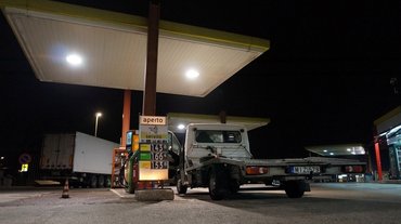 Éjfél elmúlt már, amikor aztán beütött a pokol. Az utolsó ötven kilométer a kocsányon lógó szemeké volt. Aki tolt már le 13 órát, az tudja, hogy a vaksötétben, az utolsó pici szakaszon, mennyire nem hiányzik már a totális tejköd, amikor effektíve az orrunkig látunk (a fényképezőgép képe csal, sokkal jobb a chip fényérzékenysége, mint a szemünké). Az eső vízszintesen szakad, úgyhogy a szellőztetés (márpedig friss oxigén kell) felér egy zuhannyal, plusz abszolút véletlenszerűen el-elhúzzák a sávot vagy éppen szűkítik és kilométereket kell megtennünk vakon, a két betonfal között úgy, hogy oldalankét harminc centi marad a tükrök mellett. Mindezt egy hétméteres trélerrel. Kifolyt a szemem, a negyvenes tábla egy vicc volt, hiszen még az a pár autó, amellyel találkoztunk is, hússzal cammogott, nem lehetett gyorsabban. Ott egy kicsit meghaltunk, még László is csendben nézte a betont maga előtt. Én pedig imádkoztam, hogy a pár centire elhúzó szembejövő, harminctonnás kamion sofőrje is legalább olyan éber legyen, mint én.