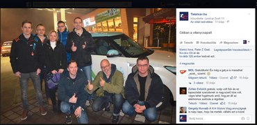 Már csak egy közös fotót kellett csinálnunk, amit a legelső töltésemkor megakadályozott a kútkezelő, mert a MOL kutakon állítólag tilos fotózni. De az olvasóink megszavazták, mi meg kattintottunk, legfeljebb leperlik a gatyánkat. Ahogy kitettük a Facebookra, a MOL hozzá is szólt a poszthoz. Egy nagyvállalatnak is lehet humora, na.