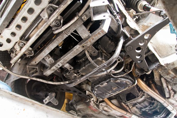 Az első futómű már a sokadik kipróbált változat, egyedi lengőkarokkal, átvariált csonkállványokkal, de most dobják éppen a kukába a tavaly használt vasakat. A kormányzás nem működött úgy, ahogy kellett volna, a kormány nem akart visszaforogni, ami driftelésnél, gymkhanánál pokolian megnehezíti a sofőr dolgát. Az autó mellé éppen akkor készítették az új csonkállványokat és a golyópályás kormányművet a fogasléces helyett. Találtak még egy zugot a motortér sarkában, ahová be lehet építeni, de nem lesz könnyű. A rommá van építve kifejezés hitvány gyengeséggel fejezi ki, miken ment már át ez a C-bódé.
