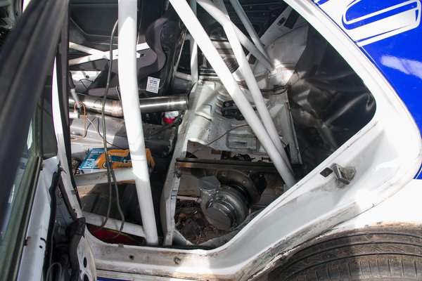 Minek? Mert annyira elszaladt a magyar mezőny, hogy kell a hatszáz lóerő. Ennyit szeretnének elérni, viszonylag szolid turbónyomással, de megbízhatóan. Egy hatliteres motornál viszont még ehhez is tekintélyes méretű feltöltő kell, mondjuk egy görögdinnyényi. Amikor Ámonéknál jártunk, éppen a bekötésén dolgoztak, ami nem egyszerű feladat, mivel a csiga a hátsó ülés helyére került. Máshol, a motorhoz közelebb egyszerűen nem fért el. Mad Max a fasorban sincs.