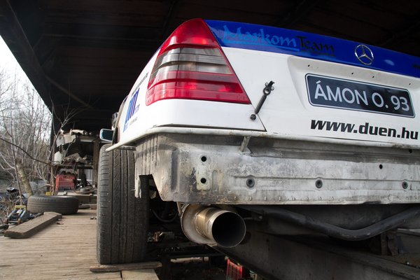 Nincs olyan kézi váltója a Mercedesnek, ami bírná ezt az igénybevételt, ezért lett a BMW-váltó. A harangot szépen ráhegesztették, a váltógomb maradt propelleres. Eddig nem volt vele baj. A futóművet először egy az egyben átvették egy bálnából, hogy legyen hús is a brutál szélesítések alatt, de mostanra az is továbbfejlődött. Sőt, igazából a fejlesztés most kezd igazán érdekes lenni. Idén már turbós lesz a C600.