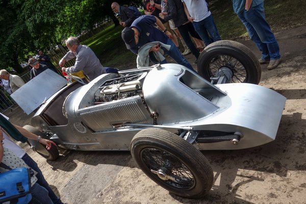 Nem maradt fenn belőle ép példány, ami Goodwoodban repesztett a pályán, egy eredeti tervek alapján újraépített gép, ha úgy tetszik, replika. Kétliteres, hathengeres motorja nyolcvan lóerőt tudott, ami már akkor sem volt sok, ellenben az autó kis súlyának és jó légellenállásának köszönhetően mégis gyors volt. Hogy mi az a propeller az elején? Az hajtja a vízpumpát. Nem vicc.