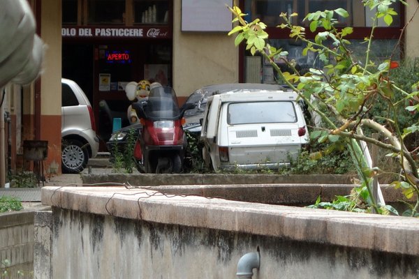 Naja, az eredeti Fiat 500. Valószínűleg sehol, még Olaszország szárazföldi testén sem akkora ezeknek az autóknak a sűrűsége, mint itt. Északabbra már láthatóan divatautóként, veterán járműként, életstílus-kiegészítőként használják a jobbára felújított Cinquéket, de itt ezek még horpadtan, szakadtan, lógó elemekkel, foltosra mattulva igazi autóként húzzák a belüket – pedig a legfiatalabb is 42 éves közülük. Persze akadnak gyönyörűre restaurált darabok, tuningolt kocsikat is látni, de nem ezek adják az 500-as szcéna gerincét. Fotóztam egy csomót mindenféle helyzetben, színben, érdemes belekattintani a 41 képes galériába, mert csodás helyeken és állapotokban lehet megfigyelni ezeket a kis járműveket, igazi közegükben.