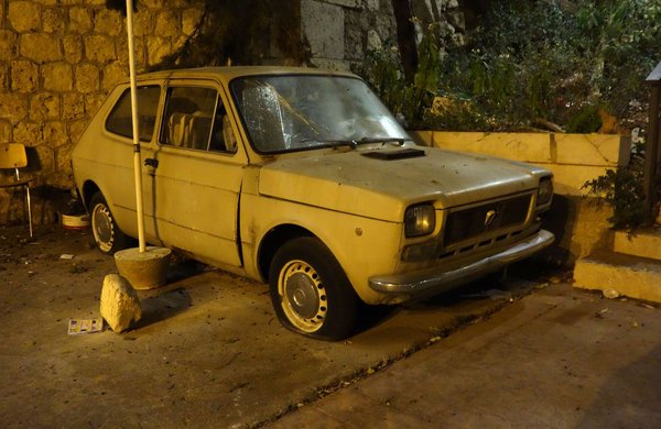 Szívem csücske, a 127-es Fiat is előfordul még itt, láttam gyönyörű állapotú, a kedvenc padlizsánkék színemben tündöklő, első szériást, illetve a végletekig lerohadt, utolsó szériás, brazil gyártású dízelt is – nem egyet. Sőt – bár azt nem fotóztam le – négyajtóst is az első 127-es szériából, amit kizárólag a Seat gyártott. Ezen a vonalon értem utol a legszomorúbb találatomat is, az Agrigento régi városrészének aljában, egy fal tövében letámasztott első szériás Huszonhetest. Láthatóan jó állapotban volt, amikor ide letették tíz éve, rajta vannak a krómozott dísztárcsák, kint van a napvédő, de most hajléktalanszállóként működik.