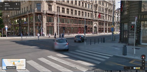 Akinek nem lenne teljesen világos, hogy is néz ki a helyszín, annak itt egy Google Maps-link, illetve egy screenshot. Jól látszik, hogy aki jobbra kanyarodik, annak gyakorlatilag az arcába világít a gyalogosok lámpája. Én úgy tanultam, hogy közlekedés közben az ember ne csak a saját tábláit figyelje, hanem a neki háttal lévő közlekedési táblák körvonalára is ügyeljen, ebből tudhatja például, ha a másiknak elsőbbségadási kötelezettsége van, vagy esetleg épp nincs. És hogy a gyalogosok lámpáira is figyeljünk, mert ha nekik zöld, akkor leléphetnek elénk, és ha piros, akkor már nem kell számítanunk gyalogosforgalomra a zebrán. De úgy tűnik, ez az edig számomra pengeélesnek tűnő logika a BKK, vagy esetleg kompletten a modern forgalomszervezés szerint idejétmúlt, ósdi dolog. Amivel onnan nézve nincs is semmi baj, hogy az emberek nem a járdaszigeten várakoznak, csak azt nem értem, hogy ezt miért nem tudatosítják az emberekben?