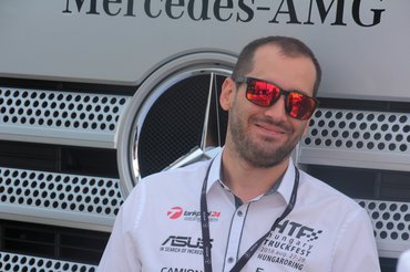 De hamar kiderült, nem csak azért van most itt, mert az idei versenykamionja egy Mercedes: ma itt kérem versenyautó vezetés lesz, Norbi egy igazi DTM-szörnyeteggel birkózhat.