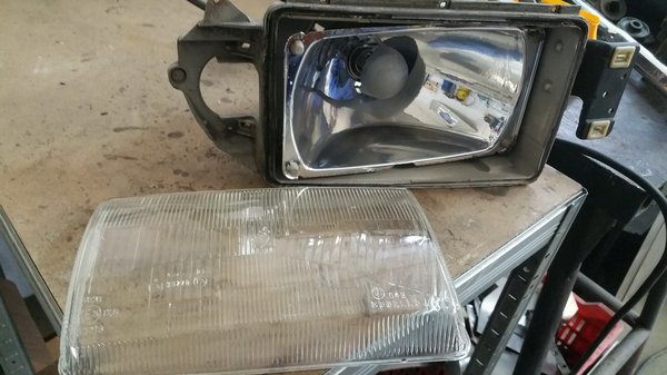 Miközben a kocsin matatott, Csabi kiigazította a sportküszöböt fent tartó patenteket (ehhez való, nem utólagos!), megnézte a küszöböket (itt is volt már lakatolva, de masszív az egész), kiszedte nekem a kerékőrös csavarokat (örök hála), kiegyengette és rozsdátlanította a pótkereket leszorító szárnyas csavart és tartozékait, mert nem bírt magával. A fényszórónál aztán elakadtunk. Mint mindig, nekem a reggeli postával érkezett az újabb adag kép és levél (hiszen itthon akkor ért véget a munkanap). 10 ezer forint, ennyiért adja az Alfa-bontós csávó a fényszórót, aminek amúgy igen rozsdás a foncsora, de az üveg valószínűleg használható belőle.