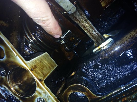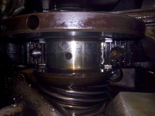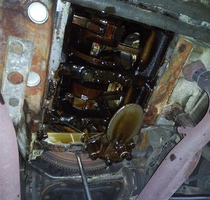 A támcsapágy ebben a motorban két, lapos, színesfém félkör, s a hátsó nyugvócsapágy mellett lakik fent, egy elöl, egy hátul. le kellett tehát vennem a hátsó-alsó nyugvócsapágy-csészét, ehhez pedig az olajszivattyút is. Utóbbi nagy hiba volt, mint később kiderült... De ekkor még tudattalan voltam, rózsaszín, illatos.