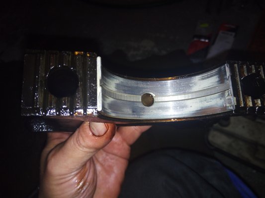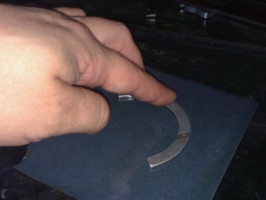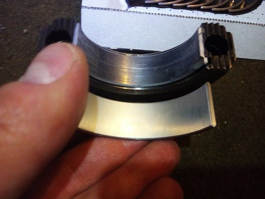 Így is lett. A kocsiból kivett két támcsapágy 2,30, illetve 2,31 milliméteres volt a digi tolómérő szerint. Az újak 2,35-2,36 között voltak. Belepróbáltam a két alapméretes újat, enyhült, de nem szűnt a kotyogás – tehát már nemcsak a csapágyak, de a főtengely is kicsit kopott. Elő a varázspálcával, ami jelen esetben egy félkör alakú, kellemetlen színű vasdarabkát jelentett, alias túlméretes támcsapágy. Nem fér be. Itt egy kellemetlenül hosszú epizód következik, melynek részleteiről inkább nem számolok be.