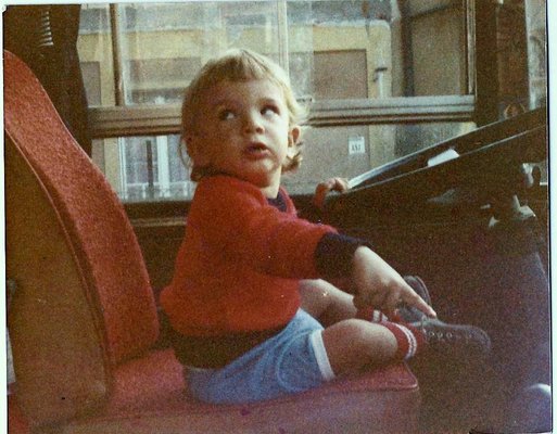Budapest; 1988 környékén. 3 évesen a volán mögött az autóbusz típusa Ikarus 256os. Éppen apukámtól kérdeztem valamit miközben a váltóra mutattam. Végül apukám olyan sokáig hagyott a vezetőülésben, hogy a buszvezetés lett a gyerekkori álmom. Ennek köszönhetően 11éve buszvezetőként újból visszaülhettem a vezetőülésbe...