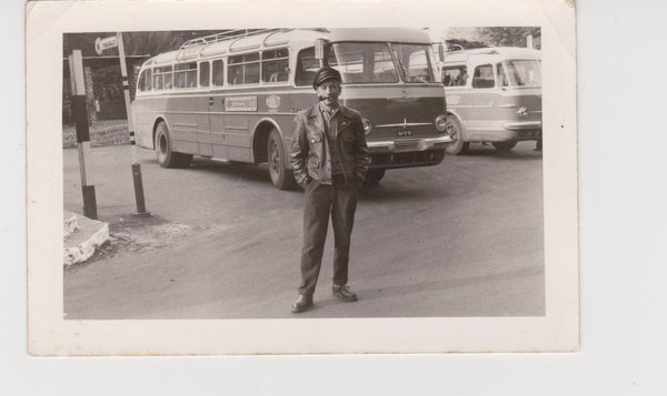 Edesapam ilyet vezetett, akkor meg nem a Volannal hanem a Mavautnal, amikor anyam megismerkedett vele... kalauzkent kezdet az oreg, aztan idovel feljebb lepett a rangletran. Apro szepseghiba, hogy a kepen meg az elozo felesegevel lathato. :-) Otletem sincs hogy hol keszult es sajnos mar megkerdezni se tudom. :-(