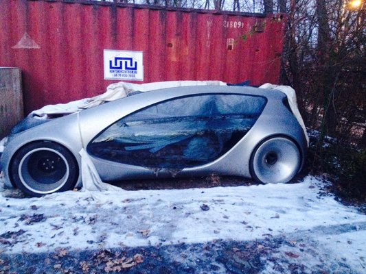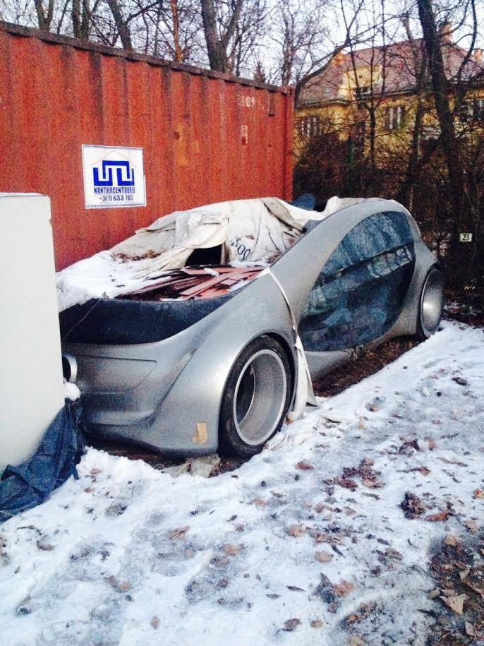 A MOME és a Mercedes-Benz Design együttműködéséről anno mi is írtunk, sőt, a Hommage-t magát láttuk is egy 2010-es rendezvényen. A tanulmányt az azóta már a VW-nél formatervezői karriert építő Fogarasi Benkő László csinálta még MOME-s diákként. Fogarasi saját blogján végig lehet követni az autó első éveit. Eszerint a Hommage sok kiállításon járt újdonságként, de a Google szerint még a 2014-es AMTS-en is kint volt. Rejtély, mikor lett belőle szemét, de a képeket küldő Gábor szerint legalább nyár óta áll a helyén.