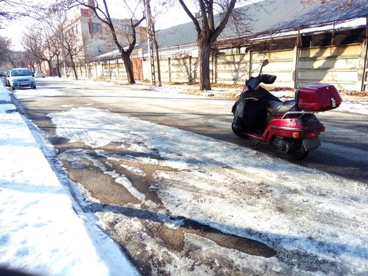 Mit tudtam volna tenni, fogtam a szerkesztőségi 24-órás versenyrobogót, Berzerkert, amin van egy jobb tükör, viszont nincs egyetlen Tucano Urbano sem, nincs kézvédő, meg lehet fagyni rajta, de mivel kétütemű és elég jól megy, ezért minden gáztépésre egy zsíros bödönnyi szénhidrogén esik ki a kipufogóján. Nesze neked szmogriadó, oldd meg az életedet BKV-val, amikor naponta három helyre kell menned... Hát így szennyeztem én vígan még tovább ezzel a rendszám nélküli bűzgöbbel az égetett bálás ruhával és PET-palack-emisszióval telihintett, varázslatos téli tájat.