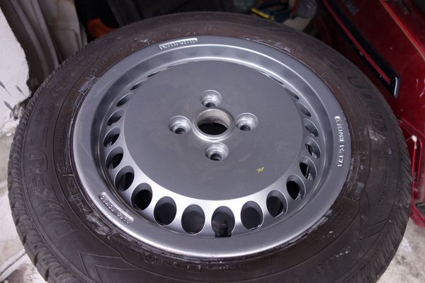 Persze nem csupán olvasói adakozásból épül ám az Alfa. A vásárlás napján vett felniket közben egy kisebb vagyonért megcsináltattam, most friss szinterrel és egy szett tűrhető gumival felszerelve várják, hogy gurulhassanak. Vettem egy szakadt belső teret is a birtokba érkezésem első napjaiban, amihez járt két szakadt gyári első ülés meg egy rakás ajtókárpit is. A csátaljai Albert István meghámozta nekem a hátsókat, s érzékkel átrakta az elsőkre az ép szövetet. Már be is szereltem a garnitúrát, le is vettem a randa, szürke huzatot a hátsókról, végre egész tisztességesen néz ki a kocsi bele, nem?