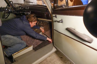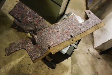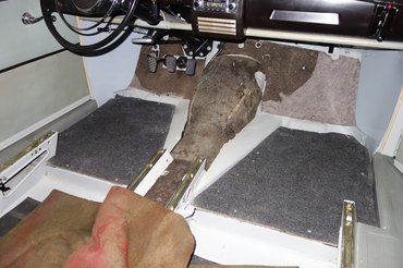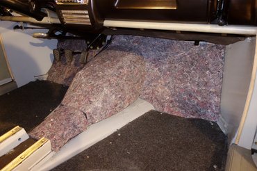 Miután megint magamra maradtam, mindenből elkészítettem a duplikátot (a váltóharangból hangyányit nagyobbat, mert a második réteg nagyobb rádiuszon fekszik fel), a rétegeket összeragasztottam, majd a váltóharang kétdimenziós szigetelését még koporsóformává is ragasztottam össze, mert helyben szétnyomná a tetejébe kerülő gumiburkolatot. Legyártottam a műszerfal alatti papundekli lemezek új szigeteléseit is (ezekben volt a legtöbb molylárva anno), s összeraktam a kocsi belét. Nem azért mondom, de igencsak elégedett vagyok vele. Korhű, szépen takar, az eredeti formát követi mindenhol minden, Stuttgartban sem csinálták jobban.