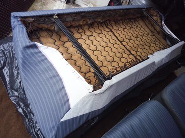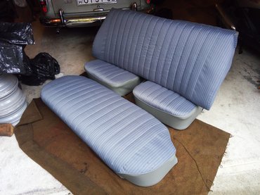 Az mondjuk, nem tetszik, hogy a támlák tetejénél, a hosszanti bevarrások mentén szögletesen fordul az anyag, de erre van magyarázat – a régi szövet lenvászon volt, ami ennél a mostani műszálasnál sokkal puhább. Az torzult, zömült, nyúlt, felvette a formákat, ahogy kell, ez a mostani, műszálas viszont olyan kemény, mintha pléhlemez lenne – István szerint idővel ki fog simulni, de most nem szabad vastagabbra tömni, mert az ülés éle elveszíti a formáját. Ebben az ügyben azóta egyik lábamról a másikra állok, mert valóban gyönyörűen megcsinálta az egészet, látom minden apró részletében, s azt is érzem, hogy ez a szövet tapintásra kicsit mintha más lenne, de azért szúrja a szemem az a felső ülés-ív, hiszen ez olyan szép szokott lenni minden Mercedesben.