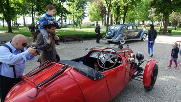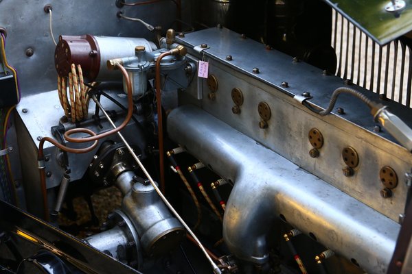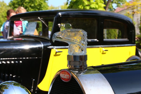 Az autók mellett időnként feltűnnek a tulajdonosok is, a Type 44-es mellett például Werner Gradisch sztorizgat kedélyesen, ő az osztrák Bugatti klub elnöke. Kinyitja a géptetőt, és akkor egy pillanatra megáll az élet: a szigorú tömb nyolc, sorba rakott hengert burkol, fantasztikusan rendezett és kivitelezett alkatrészek mellett. Három liter nyolcvan lóerő, egy biciklinél alig vastagabb gumik és dobfék, vélhetően ember azért ember kellett, nem kis gatya. A hűtőmaszk tetején egy bumfordi üveg sas trónol, ez a francia díszüveggyártó, a Lalique terméke. A céget 1888-ban alapították, ez az orrdísz egyidős a kocsival, 1929-es.