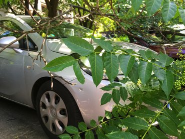 Szóval, egyrészről látnom kellett, pontosan mi is történt. Nem csak a kíváncsiság miatt. Annyi balesetet láttam már, ahol mindenki csak odanézett, majd nyugtázta, hogy valami történt és már fordította is el a fejét. Pedig ilyenkor lehet, hogy segíteni kellene. Most mondjuk sokat nem lehetett tenni, az ág leszakadt, csúnyán behorpasztotta szegény Xantia tetejét. Az öreg francia megvédett két, nála lényegesen nagyobb értékű autót, a mellette parkoló Passat és Corsa is úgy tűnt, karcolásokkal megúszta a dolgot. Óriási szerencse, hogy sem az autóban, sem mellettük nem volt senki, így csak dologi kárt okoztak a hangyák.