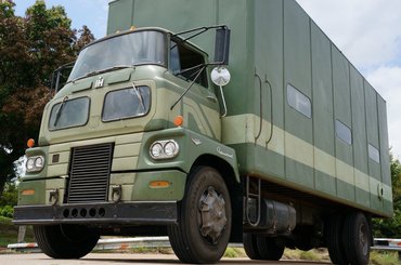 Keresztes barátunknak komoly filmszerep is jutott. Nem tudom, ki emlékszik rá, de nem is olyan rég volt az a robotos-harcolós-rossz apás, de megjavulós film, a Vasököl. Van ugye a lakhatási kényszer, meg az a tagbaszakadt robot, amit állandóan szögelni kell. Főhősünk a legjobbat választotta: Nagybódés, emelőhátfalas, szerviz-lakóautó International Harvester Sightliner teherautóból kialakítva. 2016-ban tízmillió forint körüli összegért cserélt gazdát az EBay-en, ami nem is veszélyes szám egy ikonikus, multifunkciós csodáért.