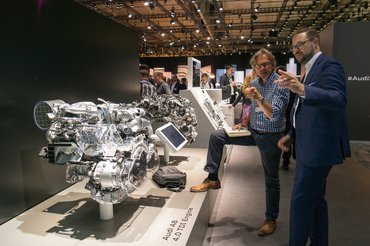 Mire ide eljut az ember, már kiégett az agya – gyors Weisswurts-bevitel után alaposabban is megnézhető az A8-as, beülhetünk, sőt, a főbb elemeit külön-külön is megnézhetjük felmetszett-mozgó-zenélő-haptikus feedbackelő installációk formájában. Még mindig ugyanabban az épületben vagyunk ám, csak egy másik teremben. Az egész alig kétszer-háromszor nagyobb az Audi genfi kiállításánál...hisz itt van ismét minden versenyautó és fontos típus, plusz némi gyártási demó a jövő gyáraiból, ahol kis alkatrészhurcoló targoncák táncolnak formációban. Atyavilág.