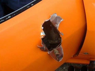 Ma reggel viszont egy olyan képsorozatba futottam bele, ahol a dragversenyzés egészen más veszélyforrására hívja fel a figyelmet. Amellett, hogy a motorok a már emlegetett ezer lóerő feletti teljesítménytartományban működnek, a fordulat is elég magas, és bizony előfordul, hogy a hajtáslánc egy-egy eleme feladja. Ennek a narancs Plymouth Barracudának a tulajdonosa például biztos nem számított arra, hogy a lendkerék szétszakad és átszakítja a váltóharangot. És a kardánalagutat. És az utasoldali ajtót. Meg még ki tudja, mit.