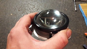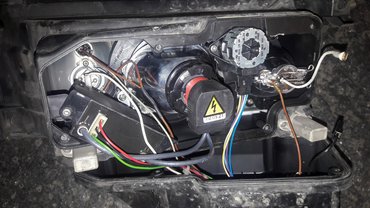 Kivettem az egyik lámpát, szétbontottam és beigazolódott a sejtésem. Szerencsére a Skoda lámpája hátulról megközelítve szedhető szét, nem kell melegíteni, feszegetni a burát. Néhány felesleges művelet után végre szétborult a miskulancia. Összesen három csavar tartja a projektort, az elektromos vezetékek lekötése után könnyen kibillenthető az egész szerkezet a lámpatestből. Este bütyköltem, a teremgarázs riasztója 10 percenként érzékelte a jelenlétemet, nyomkodhattam a távirányítót. Komoly figyelemmegosztási tréning volt ez a pár óra.