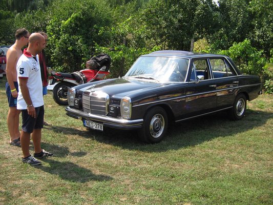 Zsolti a tőlem kapott pénzzel gyorsan kiugrott Franciaországba megvalósítani régi vágyát, egy 108-as Merci birtoklását – ez az a barokkos, Fecske-alapú nagy-Mercedes, amit a hatvanas évek közepétől a hetvenes elejéig gyártottak, s tényleg olyan, mint egy Rolls-Royce, még a műszerfala nagy része is tömör fa, s ha további hitelt kell neki szerezni, akkor annyit mondok, Sipos Zoli barátomnak is ilyenje van, ami helyből a Hall of Fame-be szögezi a típust.