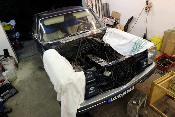 A Mercedes tehát évekig készült, a fémmunka egész jó lett rajta, aztán fényezték, már talán kevésbé ügyesen, bár ezt így nyolc év lényegében szabad ég alatti tárolás után nincs alapom eldönteni. Kicsit ki lett próbálva P-rendszámmal (lehet huhogni, de ha nem erre, akkor mi az istenre való a P?), füstölt, ezért egy ex-Kárpát utcai mester (Pártgarázs, megvan?) megszimeringezte a szelepeket, talán vezetőzte is őket, már senki nem emlékszik pontosan, de tett valamit, amit Magyarországon mindenki tesz: megsíkolta a Mercedes-hengerfejet. Pedig ilyet soha nem szabad, ha igen, akkor csak végszükség esetén és hangyányit, nagyon-nagyon-nagyon-nagyon pontosan. Erre később visszatérünk.