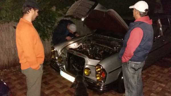 Egy elgyötört társaság fogadott a kibelezett 230-as mellett. Zsolti, aki a harmadik doboz cigijén volt túl, de pörgette az adrenalin, hogy saját Mercivel mehet a németekhez, ha összejön. Zoli, a szerelő haver (nem az instant, kapkodós haver ő, hanem az idővel mindig hadilábon álló, de gondolkodó és szuperprecíz másik), aki épp a válást kockáztatta, mert kábé két hónapja nem látta az egyfalnyi távolságra levő asszony, de épp ráhúzni készült pár órát az éjszakára (2,5 doboz cigi), Titye és haverja, Belsőség-olvasóink, akik valami kacifántos úton belekerültek a rabszolgacsapatba, pedig alapvetően a Volvókat szeretik (2 doboz cigi). Kiklopfolt egy banda voltak, ültek az olajos romok tetején üveges szemmel, én viszont nem maradhattam, engem várt másnap az alkotó munka a TC-ben...