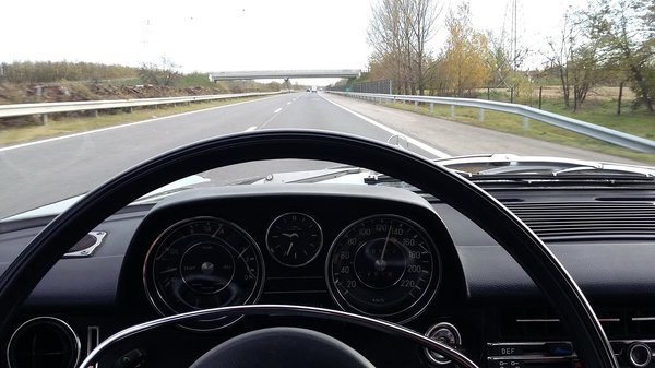 Visszakaptam egy végre tényleg mindenhol ugrani tudó, selymesen duruzsoló (á, a selyem csak daróc), igazán jó kis állólámpást. Persze, vannak bajok még ezrével, kéne egy jó pergamen ülésgarnitúra, mert ez az egész szakadt, egy csomó elektromos cucc nem megy, ajtókat kell állítanom, a dupla első lökhárítót le kell cserélnem szimplára, mert olyan csak a 250-esen és a 280-ason volt. De az autó tiszta fém, a motorja felújított, a futóműve-fékje-váltója-kormánya jó, a karbik generálozottak, a fényezés elmegy, az alapok tehát nagyon is rendben vannak. Most, hogy már működő kilométer-számlálóm van (igen, megkentem WD-40-nel), talán tudok majd pontos adatokat is a fogyasztásról.