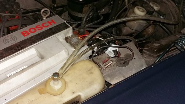 Azóta kicseréltem a jó kétcsavarosra a lengéscsillapítót. A másikból kifúrtam a csavart, menetet vágtam bele, szabtam tőcsavart, betekertem, beragasztottam, nemsokára a másik oldalra beteszem azt. Vettem szelepet az ablakmosóhoz, túrtam kupakot, s tartályt, összeraktam az egészet. Persze kiderült, hogy a csövek túl rövidek, ezért a lábpumpától a tartályig, illetve a tartálytól a fúvókákig mindent ki kellett cserélnem. Rájöttem, hogy a fúvókák is valami gagyi, műanyag, autósboltos vackok, tehát még két, igazi állólámpa-féle spricnit is túrnom kell majd, kifőznöm őket ecetben (mert a vízkő ezeknél mindig probléma), s beszerelnem.