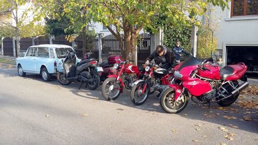 Ami a legmeglepőbb, hogy kiderült róla – igazából kényelmesebb rajta túrázni (ha a csomagcipelő képesség szinte teljes hiányát leszámítom), mint a kifejezetten túrázásra való Yamaha XJ900-asomon volt, amin nekem mindig zsibbadt a karom, a Kati pedig panaszkodott rá, hogy túlságosan nagy terpeszben kell rajta ülni. Érdekes, a Ducatin élvezi az utazást – nem én mondom, hanem ő, magam sem akartam elhinni, többször rákérdeztem. És most, ahogy a 750SS a garázsban áll, hirtelen nem is tudom, mit lehetne még rajta megcsinálni, mert jó. Talán néhány matricát elhelyezhetnék a burkolatokon, mert azok hiányoznak, de ahhoz minimum át kéne lakkozni... Á, kibírja még egy kicsit így. Tavasszal tolom is majd elő, megyünk megint túrázni – Zöldi úr, akkor az utánfutót elkérhetem megint, ugye...?